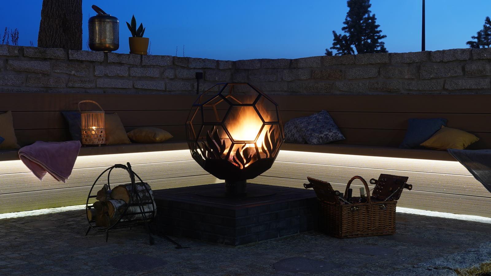 Ideali vieta su griliu ir židiniu užtikrina puikias sąlygas vakarinių pokylių prie ugniavietės organizavimui. Jaukūs stalai skatina susiburti prie bendro maisto atvirame lauke, kuriame galima mėgautis ramumu ir magiška atmosfera.