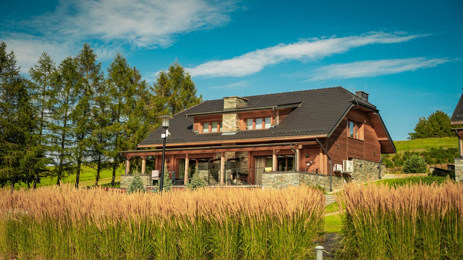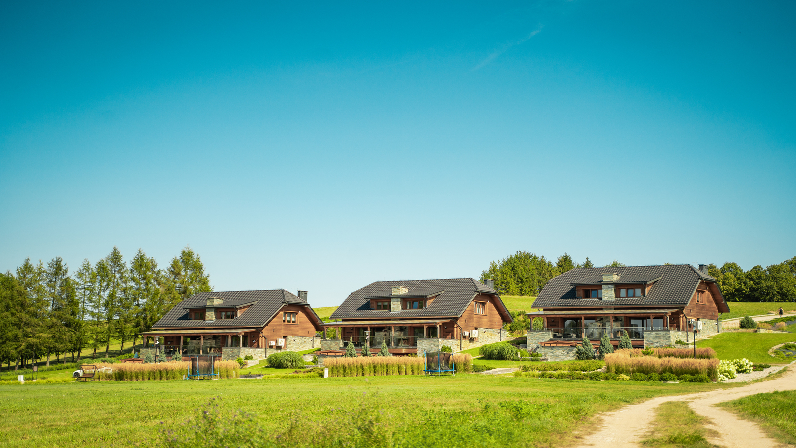 Centrum Wypoczynkowe AURA oferuje trzy duże domy letniskowe usadowione na niewielkim wzgórzu, wykończone w wysokim standardzie w 2022 roku i spełniające oczekiwania nawet najbardziej wymagających lokatorów!